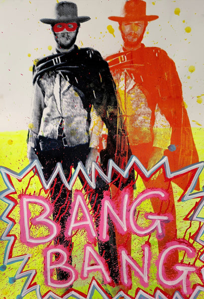 Eight new designs in my Print With No Name series. Each piece features the iconic Clint Eastwood from the spaghetti western era, hand-finished with vibrant colours that make each print burst with colour and personality. It’s all very funky, very now, and every single one is unique.